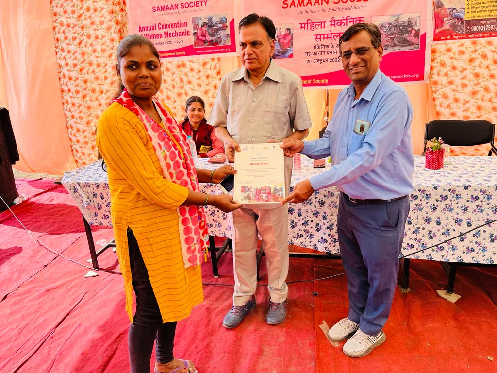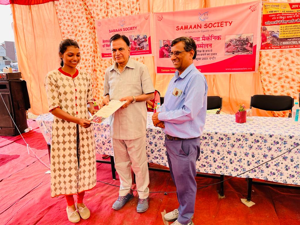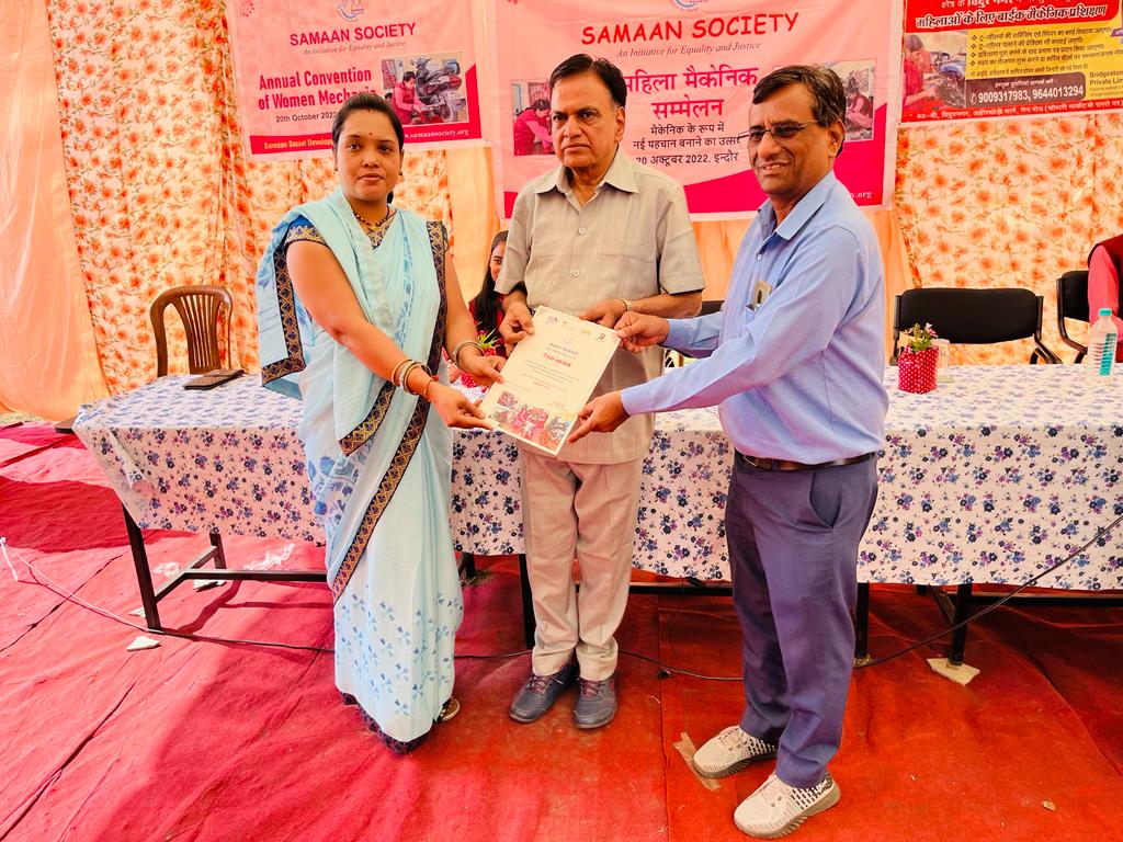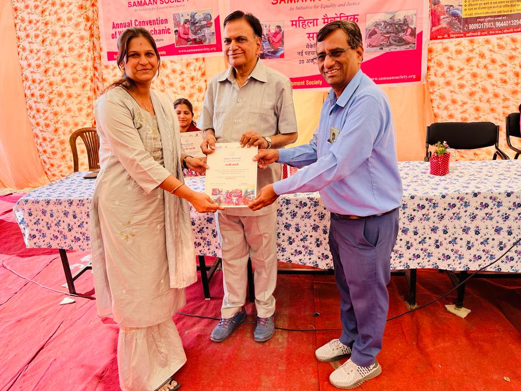 इस संस्था मैं जो मैकेनिक की ट्रेनिंग दी गई है उन महिलाओं का सम्मान एवं प्रमाण पत्र का वितरण दिनांक २१-१०-२२ को उनके प्रधान कार्यालय एवं ट्रेनिंग स्थल विदुर नगर में किया गया । उसी की कुछ झलकियां –